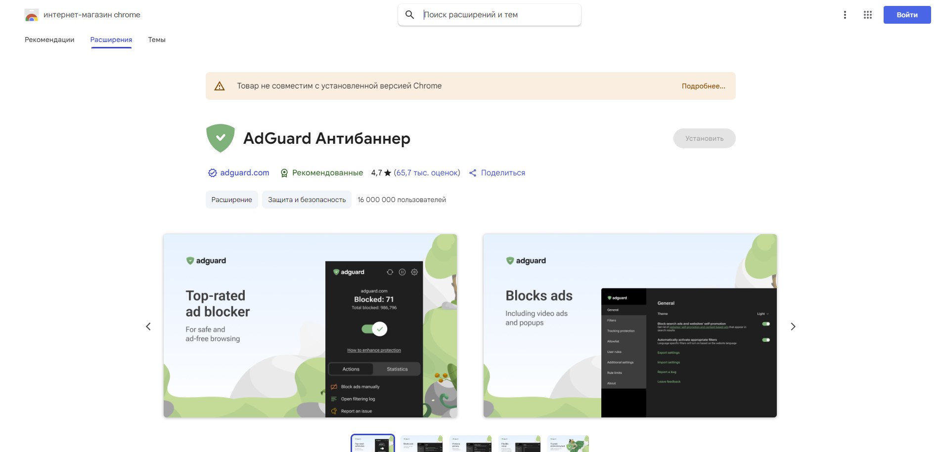 | Блин, у меня проблема одна нарисовалась несколько недель назад - теперь не ставится адгуард антибаннер на хром.