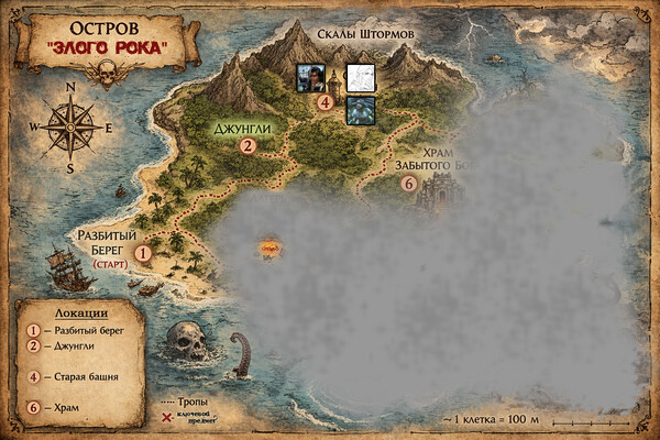Не прошло и пары лет, как рулевой удумал очередную экспериментальную забаву. Этот раз предлагаю вам принять участие в небольшой ролевой с простой системой характеристик. История возьмёт свое начало на берегу таинственного острова, на котором, по злому року судьбы, вам доведется прийти в себя после кораблекрушения. Что из себя представляет этот клочок земли и какие тайны хранит, как в итоге с него выбраться? На эти вопросы вам придется найти ответ в ходе своего похождения в этой игре.