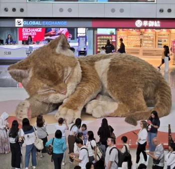 В аэропорту Гонконга установили гигантского кота. bravo pardon