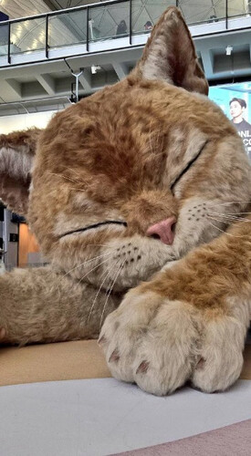 Он может двигать ушами и хвостом и даже мурлычет, что придает реалистичности. В аэропорту он будет отдыхать до 2 мая. Мне бы наверняка захотелось спать, глядя на него.