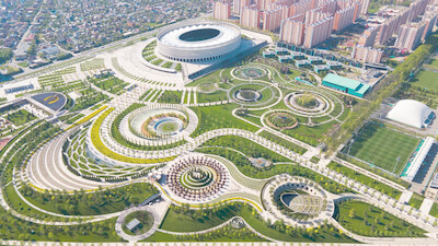 | Парк Галицкого (официальное название — «Краснодар») — современное общественное пространство в Краснодаре, созданное меценатом Сергеем Галицким. Открытый в 2017 году парк стал визитной карточкой города. Некоторые особенности парка: • Ландшафтный дизайн: множество террас, водоёмов и искусственных холмов. Территория разбита на тематические секции, при этом прямых линий на карте парка практически нет — большинство дорожек и аллей закруглённые или изогнутые. • Растительность: в парке можно встретить редкие и экзотические растения со всей планеты — от баобаба до сакуры. • Стадион «Краснодар». Главное сооружение парка, которое прозвали краснодарским Колизеем (или «Гализеем» — с отсылкой к имени мецената). • Амфитеатр. Расположен ниже уровня земли и напоминает большой круглый котлован, а в его центре находится экран для показа кино. • Смотровая площадка «Пирамида». Это холм со спиралевидной тропинкой, с вершины которого можно увидеть парк во всей красе. • Игровой бульвар. Это целый спортивный городок для активного отдыха всей семьёй. Здесь оборудованы скейт парк, скалодром, роллердром, верёвочный парк, водная площадка, песчаный овраг и стритбол площадка. • Французский сад. Тихое и уединённое место, где можно отдохнуть в тени деревьев. • Террасированный сад. Клумбы располагаются на разных уровнях, это создаёт иллюзию настоящего цветущего поля. • Зеркальный лабиринт. В его центре находится водоём с карпами, где растёт редкий королевский делоникс или, как его называют, огненное дерево. • Японский сад. Около 26 уникальных локаций в традиционном японском стиле, много прогулочных троп, деревьев и кустарников.