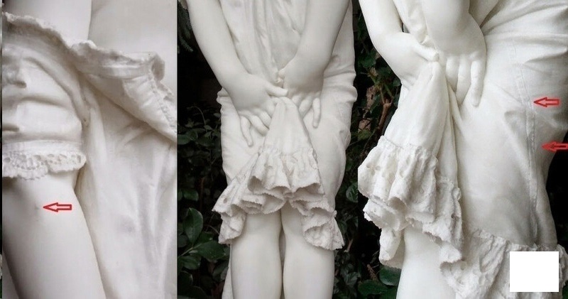 Но если подойти поближе и рассмотреть повнимательнее, то открываются такие детали, которые заставляют усомниться в том, что статуя была создана в XIX веке известным всем способом.