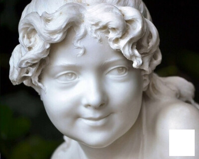 Первое, что поражает — как мастер сумел воспроизвести глаза ребенка, которые в буквальном смысле светятся. В них хорошо различимы все мельчайшие элементы: веко, роговица, и, не поверите, даже зрачки. Причем роговица прозрачная, с прожилками, окруженная темным ореолом. Такие глаза можно найти только на фотографиях, но никак не у каменных скульптур. Если помните, у древнегреческих статуй так называемые «слепые» глаза, без зрачков, так как вырезать подобные элементы не представлялось возможным. Не менее искусно сделаны брови, волосы, где виден каждый локон, ямочки в углах губ.