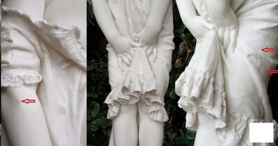 Низ платья обрамлен кружевами, которые также воссозданы с потрясающей четкостью. Каждая дырочка, каждый рубчик видны. Причем на коленях девочка собрала подол в сборку, и кружева свисают каскадом, собираясь в сложные воланы. Внутри них видны узоры с прорезями, все шовчики и складочки. И все это человек годами резал на цельном куске мрамора. Как думаете, такое вообще возможно?