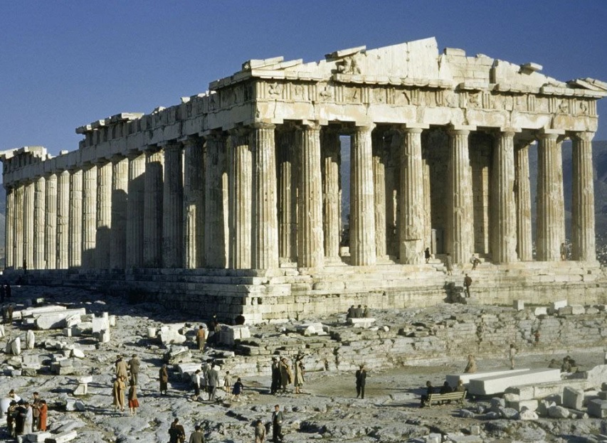 Построенный в 5в до н.э храм - одна сплошная оптическая иллюзия. Основание имеет небольшое повышение к центру, чтобы издалека не казалось, что пол прогибается. Угловые колонны наклонены к середине, а две средние - к углам. Сами колонны имеют разную толщину в зависимости от места в храме, сужаются кверху, да еще и каннелюры (желобки на колоннах) отрегулированы по толщине так, чтобы из-за оптики казаться равной ширины.