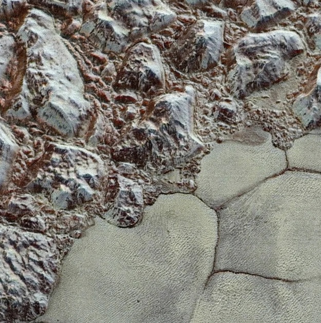 На этом снимке очень близкий взгляд на поверхность Плутона от аппарата «New Horizons».