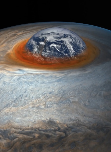 Визуализация, показывающая насколько Большое красное пятно Юпитера огромное shok