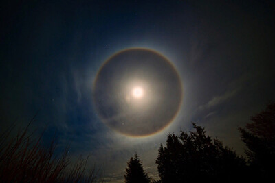 Это оптическое явление, при котором вокруг Луны можно наблюдать кольцо света, сверкающую дугу или столб света.