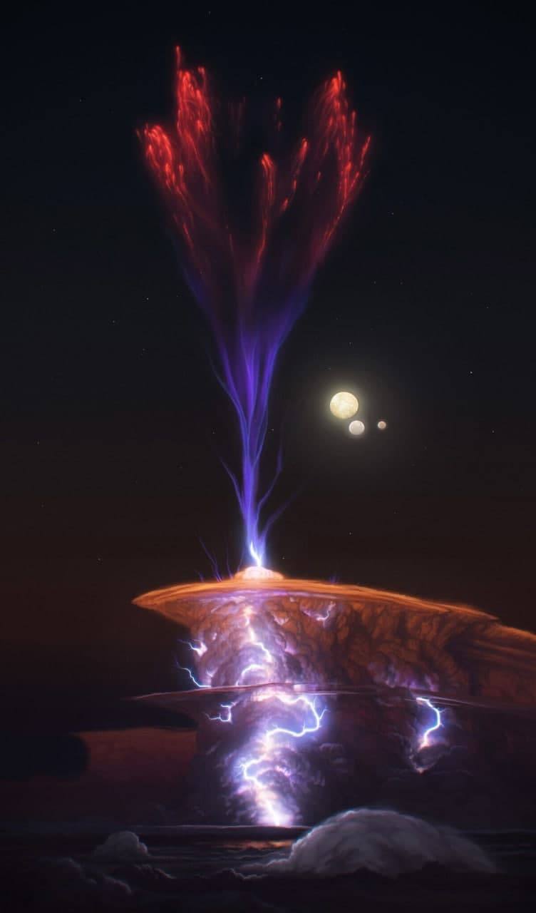 Фотография была сделана на Юпитере ранним утром, когда Солнце освещало вершину мощной грозовой тучи.