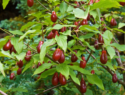 Кизил (лат. Cornus) — род растений семейства кизиловых. В основном это листопадные или вечнозелёные кустарники, реже деревья (высотой 4–6, иногда до 9 м). Некоторые виды — травянистые многолетние растения, несколько видов — древесные зимнезелёные. Название «кизил», по одной из версий, происходит от тюркских слов, означающих «красный» — что неудивительно, ведь плоды у растения яркие, рубиновые. Ботаническое описание Листья ярко-зелёные, простые, цельнокрайные, супротивные (длина до 8 см). Цветки обоеполые, мелкие, жёлтые, в зонтиковидных соцветиях (цветение в марте — апреле, до появления листьев). Плоды — съедобные мясистые костянки (длина до 3 см, масса до 12 г). У диких видов — красные, удлинённой формы; у культурных сортов — различных форм и окрасок (в том числе белые, розовые, чёрные, жёлтые). Созревают в августе — сентябре. Мякоть кисло-сладкая, вяжущая, богата витамином C, каротином. Виды Около 50 видов кизила. В РФ один вид — кизил обыкновенный, или мужской (Cornus mas). Применение Плоды употребляют в свежем, сушёном и переработанном виде (варенье, мармелад, компоты и др.). В медицине используют плоды, листья, кору и корни кизила. Из прочной и тяжёлой древесины кизила издавна изготовляли пуговицы, детали часовых механизмов, зубцы мельничных колёс, ткацкие челноки и другие предметы. Насаждениями кизила защищают склоны от оползней.