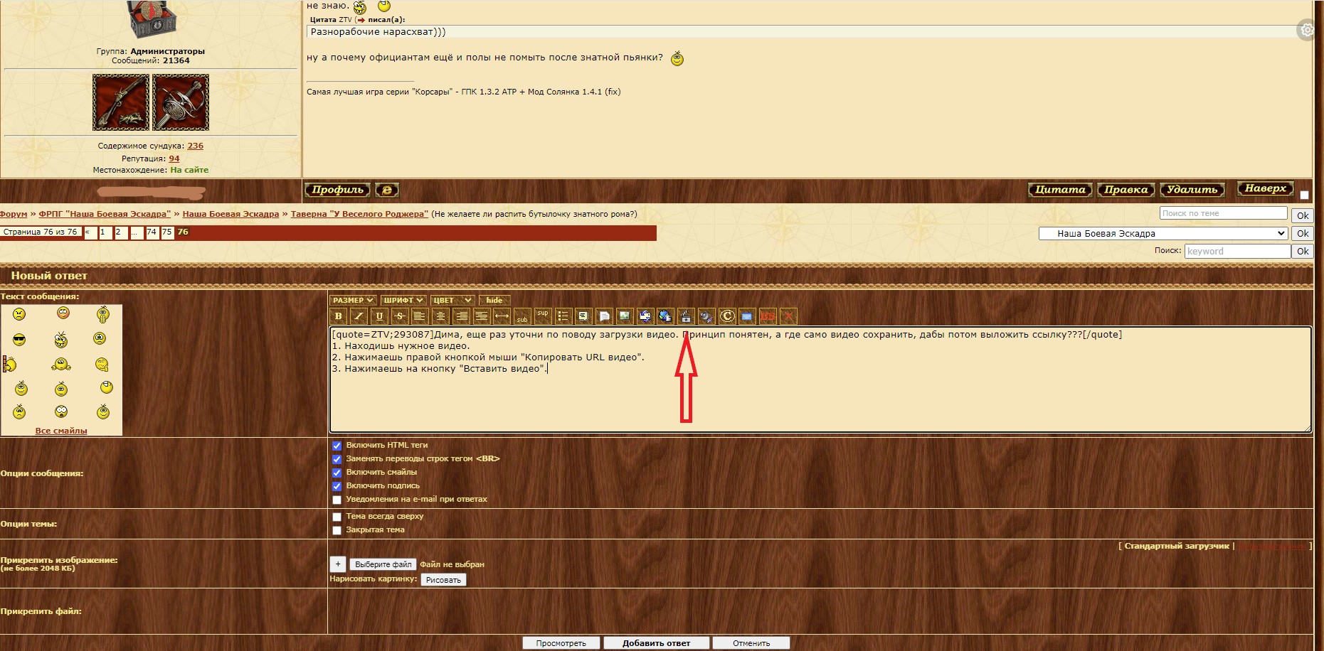 | Цитата ZTV (  ) Дима, еще раз уточни по поводу загрузки видео. Принцип понятен, а где само видео сохранить, дабы потом выложить ссылку??? 1. Находишь на ютубе нужное видео. 2. Нажимаешь правой кнопкой мыши "Копировать URL видео". 3. Нажимаешь в окне отправки поста на кнопку "Вставить видео".