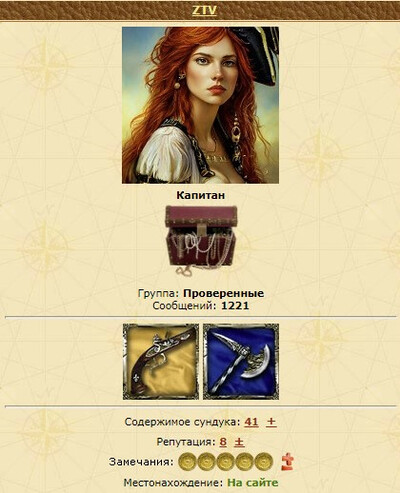 | Двери таверны открыты круглосуточно! К вашим услугам горячительные и прохладительные напитки, отменная пища и хорошее настроение!  Наше меню:Стр. 1:Стр. 2:Фирменная Яичница "По Корсарски"Всегда в ассортименте "Кабанчик на вертеле"Обслуживающий персонал: