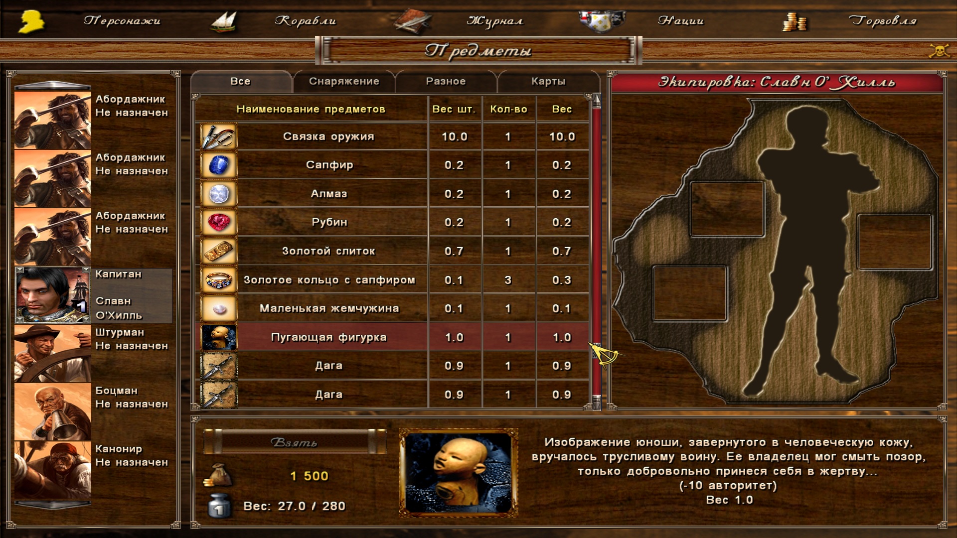 | Цитата ZTV (  ) Это как? Бесплатно? когда уже сбежишь с острова, назначишь двух оффов абордажниками и через интерфейс "Обмен" отдашь им лишние плюшки.