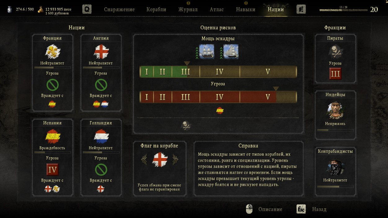 - Значительно переработан интерфейс отношений с нациями, добавлено отображение отношений с контрабандистами и индейцами;
