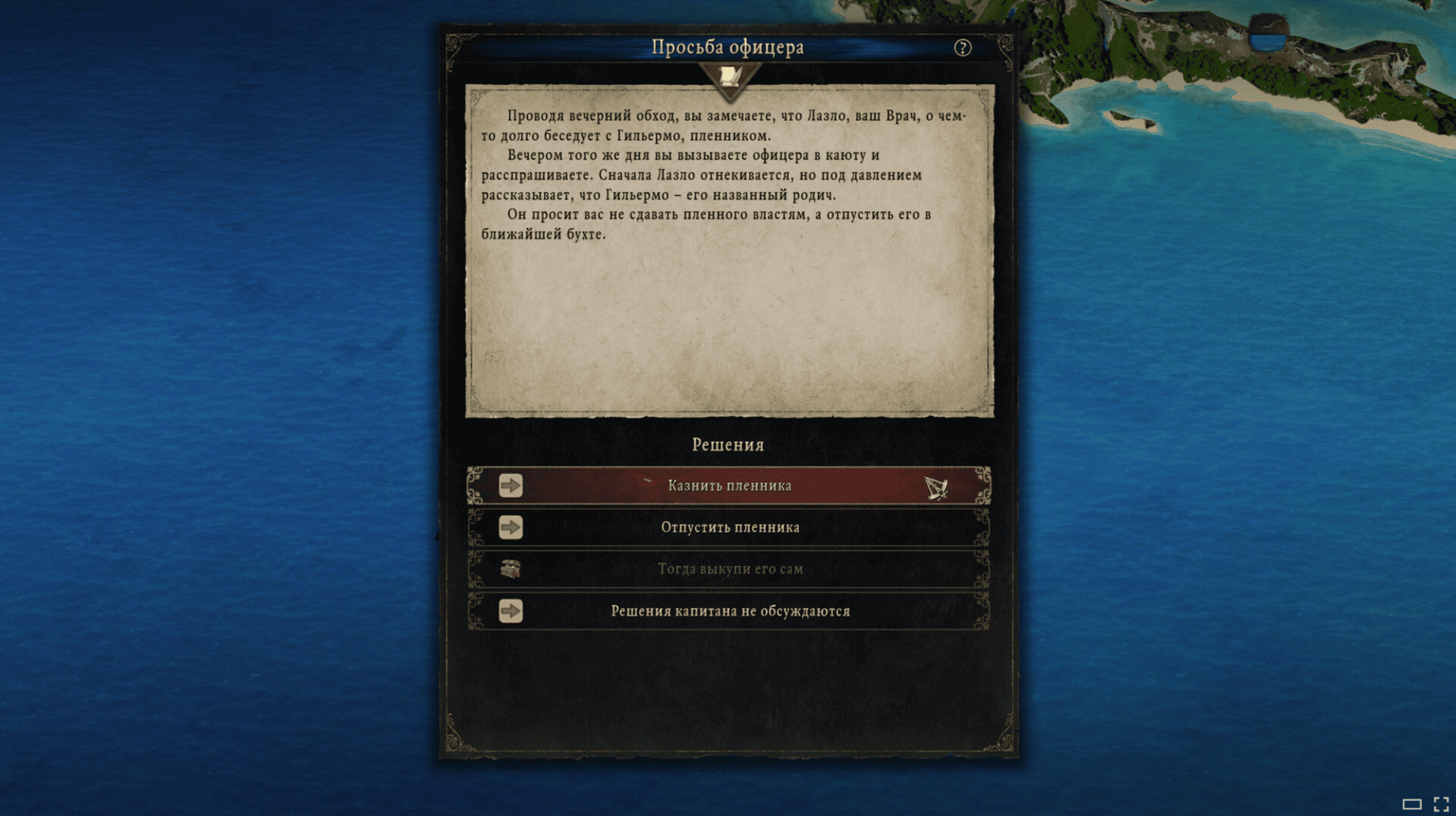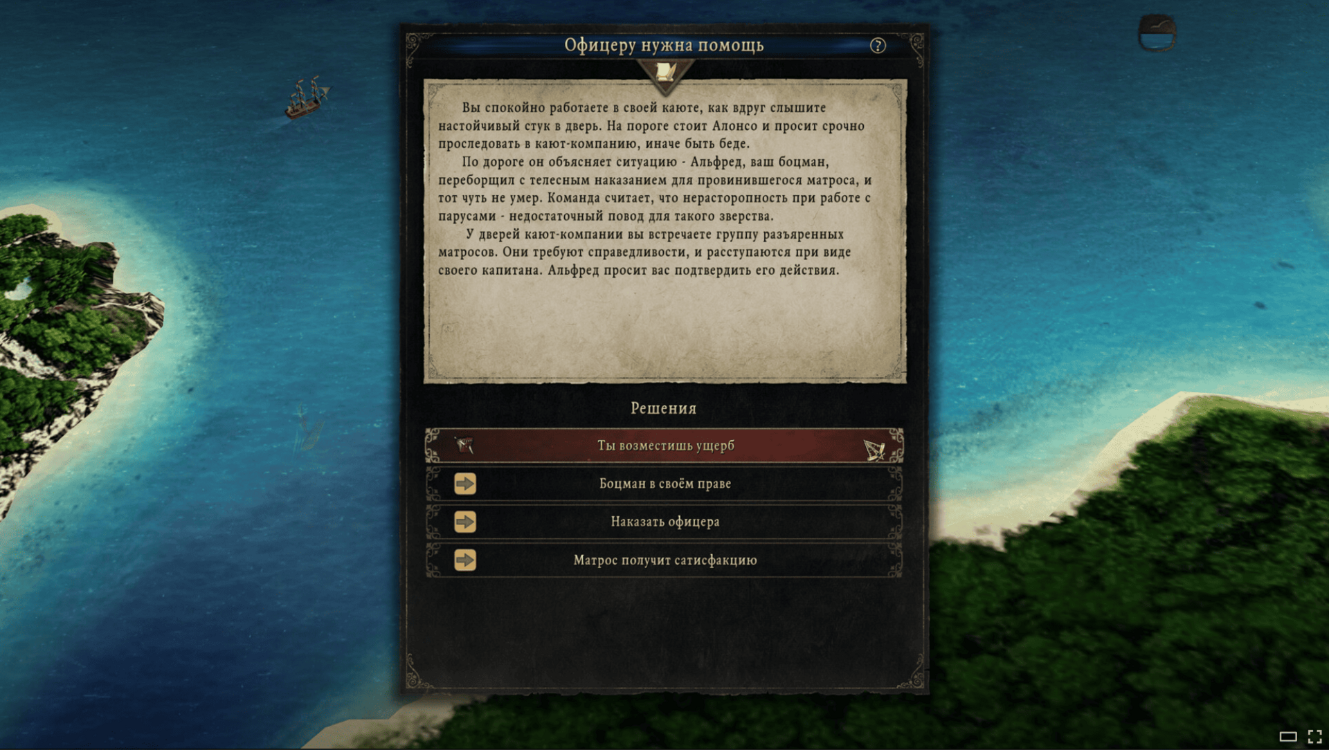 Так всё будет в балансе: капитан может оказаться смельчаком и подняться на палубу (тогда вас встретит пустая каюта), либо он будет осторожен и забаррикадируется в каюте вместе с офицерами. Всё это будет сочетаться с остальными случайными событиями во время абордажей, и разнообразие будет максимальным.