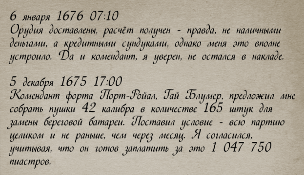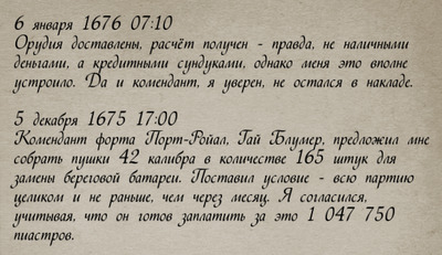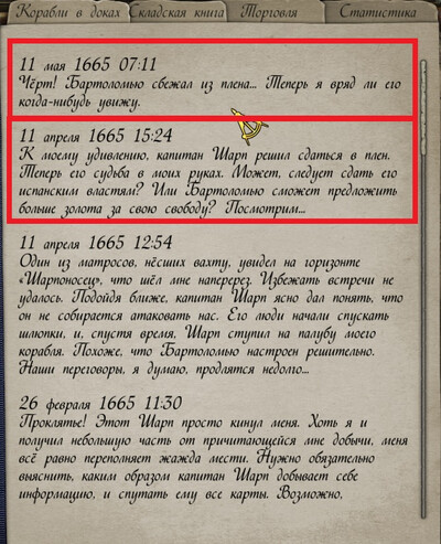 [off]1. В игре не вся информация записывается в Судовой Журнал, это касается квестов (что небольших, что достаточно объёмных), поэтому будьте внимательны, записывайте или запоминайте информацию, иначе вам придётся откатываться назад.