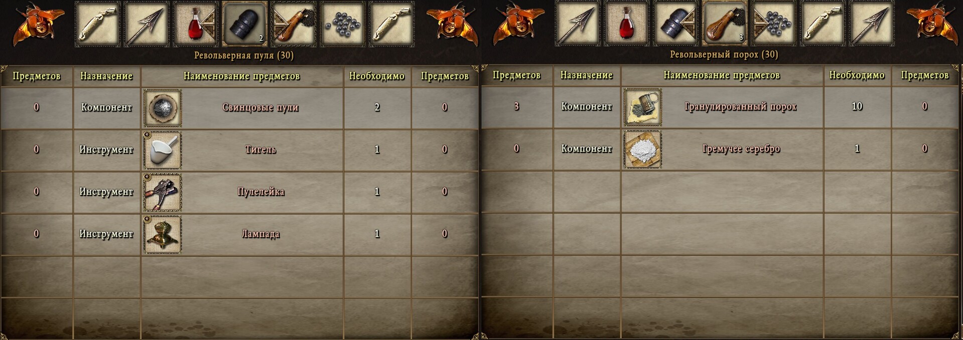 Кстати, Митла дает рецепты на пульки и порох для револвера!