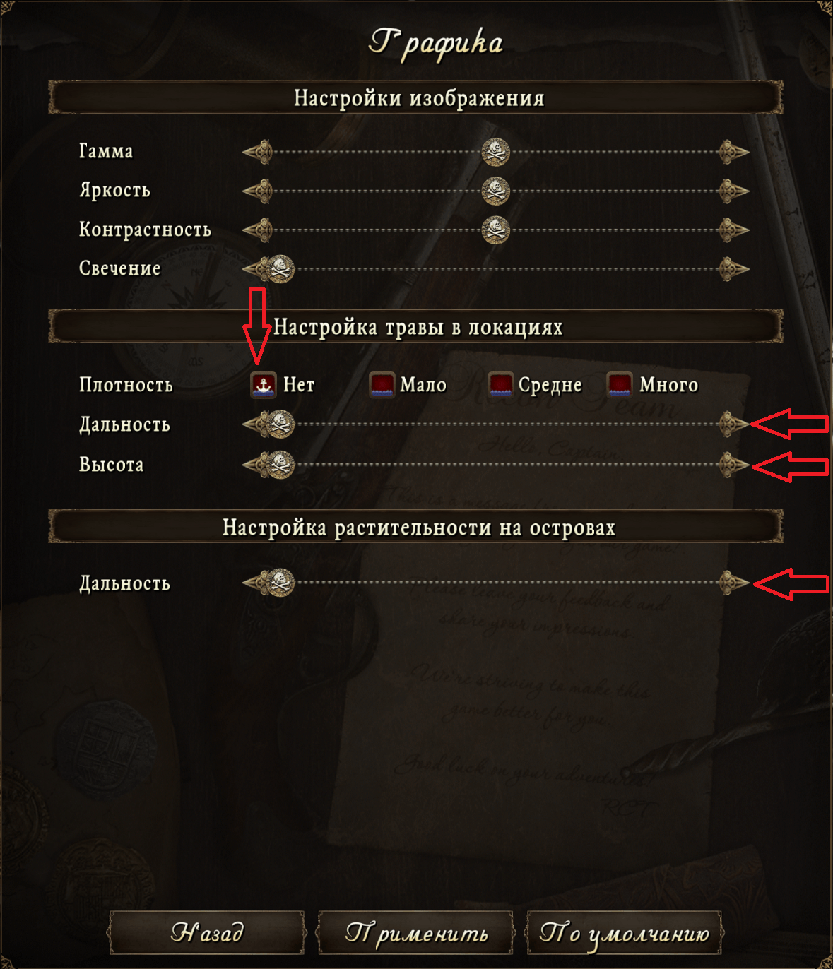 1. В самой игре отключите/уменьшите дальность прорисовки травы на островах (необходимо зайти в настройки игры (в раздел "Графика") и с помощью ползунка поменять параметр дальности прорисовки травы, ещё может помочь отключение плотности травы в игре вообще, а также её дальности и высоты):