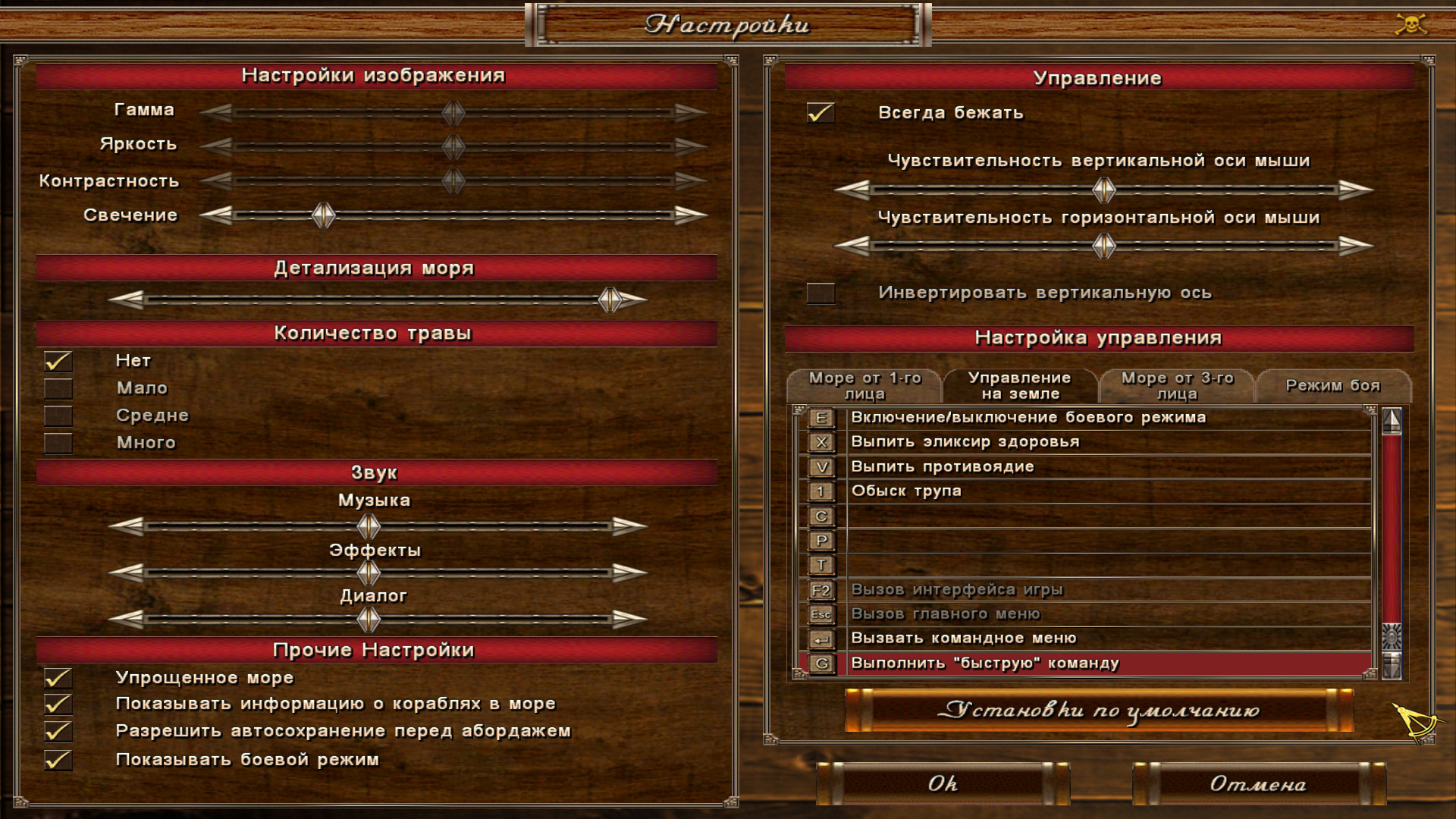 | Цитата ZTV (  )   в настройках есть дополнительные клавиши, которые не проставлены буквами и знаками, мне непонятно, что выставлять...  это глюк небольшой, эти три клавиши отвечают за определённые команды, которые ГГ может отдавать абордажникам, находясь на суше ("Атаковать", "Стоять на месте", "Следовать за ГГ").